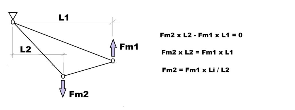 Apresentados estes componentes básicos, vamos “matematicalizar” um pouco o nosso trabalho para torná-lo mais alegre!! Para isso, vamos observar a relação de momentos apresentada na Figura 2, em relação ao centro de eixo do aparelho.