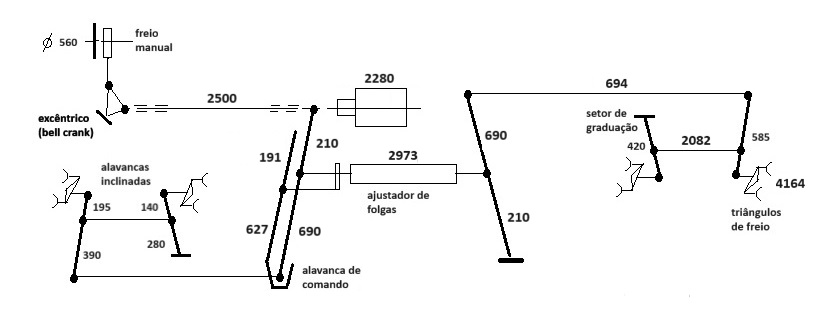 2- Aqui o efeito de segurança se faz presente, já que teremos forças nas alavancas e tirantes acima dos valores daqueles obtidos com o ar comprimido. Isso porque precisaremos “segurar” o vagão carregado no pátio sem qualquer possibilidade de que ele se movimente.