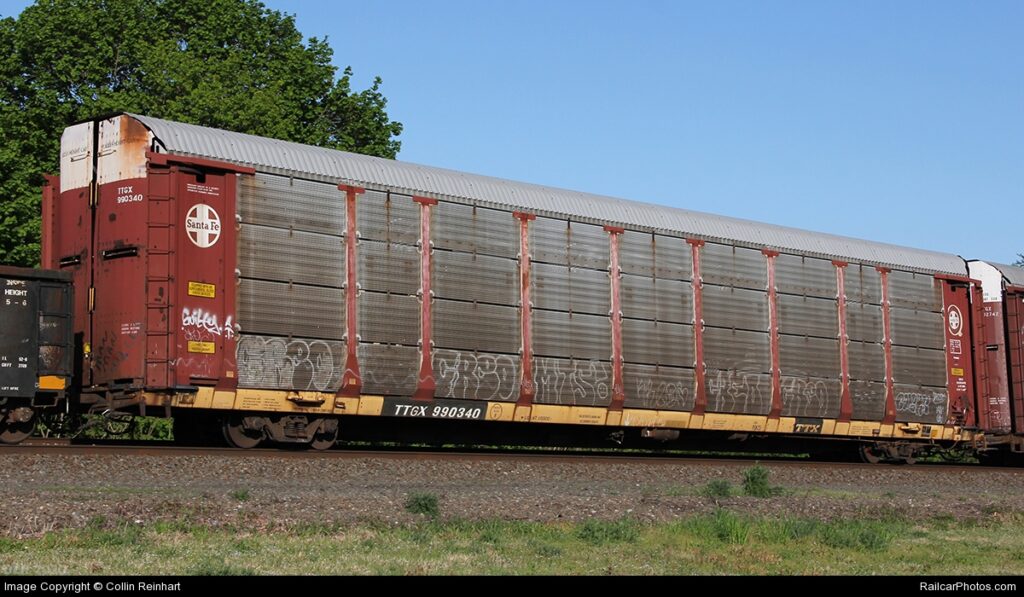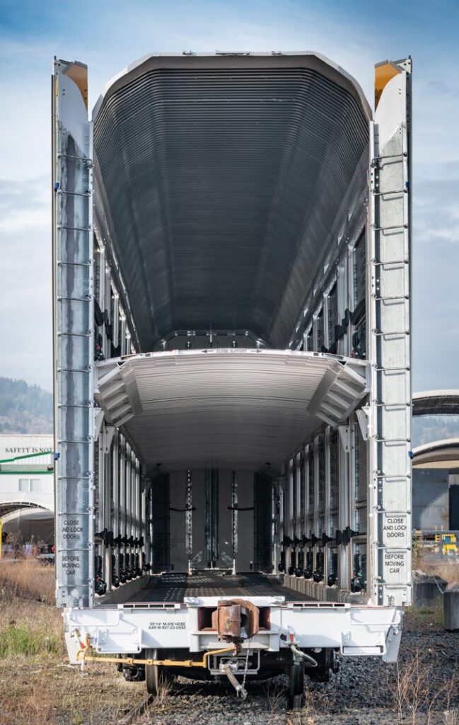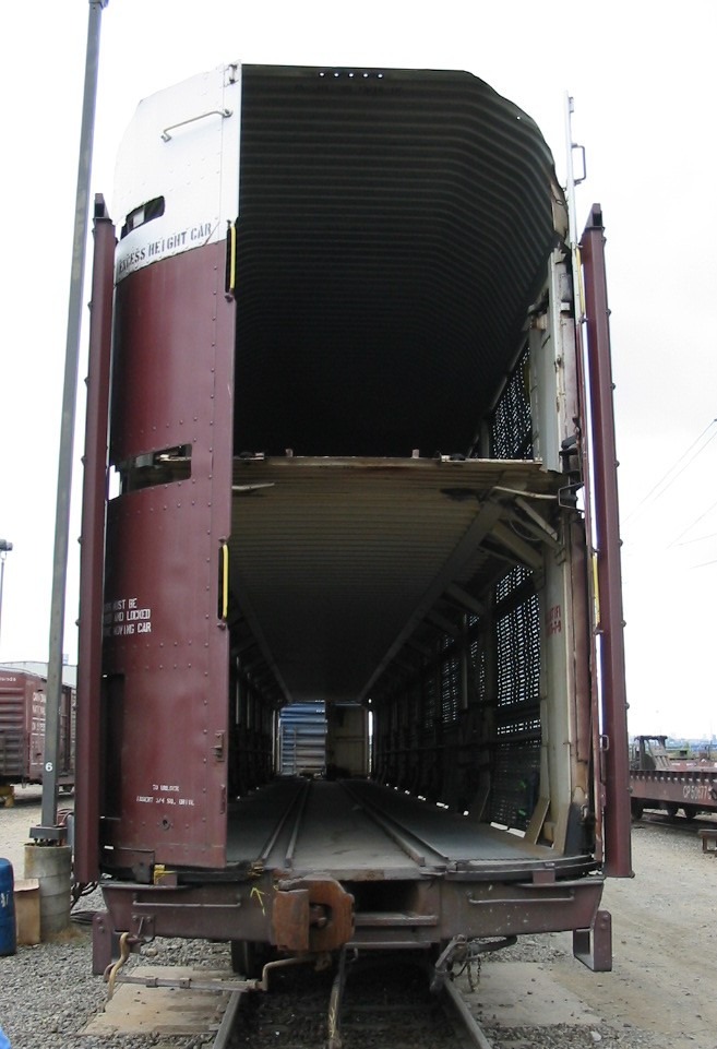O primeiros destes vagões, como já se pode ver pela imagem destacada acima, é o tipo AUTORACK. Este vagão foi desenvolvido para o transporte de automóveis, vans e caminhonetes em 1, 2 e até 3 níveis internos para aproveitamento do espaço útil em função do tipo de veículo transportado. Por incrível que possa parecer, os Autoracks são classificados como vagões plataformas e não como vagões fechados, que seria o mais lógico.