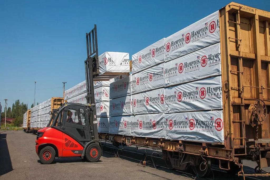 Fig. 8 – Operador de empilhadeira em seu trabalho cuidadoso de arrumação da carga (Hampton Lumber Co.).
