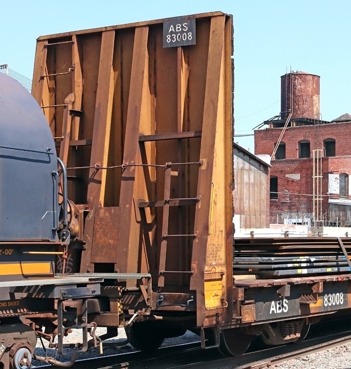 Fig. 3 – Anteparos de cabeceira de um Centerbeam e de um plataforma de carga geral (RailcarPhotos.com)