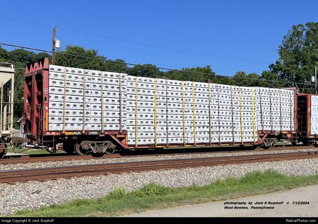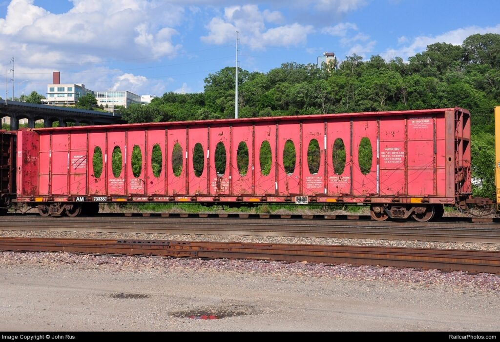 Este tipo de vagão nasceu nos EUA no ano de 1969 fabricado pela antiga empresa Thrall Car Manufacturing, quando havia uma crescente demanda por madeira de construção, o que chamamos de madeira aparelhada ou cortada e acabada. Como todos nós sabemos, as casas no país amigo são basicamente construídas de madeira de reflorestamento sobre uma fundação de concreto e por volta da metade dos anos 1980, havia muita procura por este material pelas condições muito favoráveis de financiamento de moradias, sendo a ferrovia a solução adotada para movimentar o grande volume demandado.