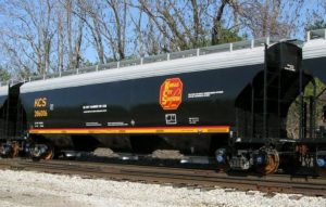 Vagão Hopper Tanque da ferrovia Kansas City Southern-USA, projeto para 130 t de peso bruto máximo sobre a via,